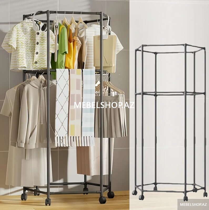 Asılqan 360° Təkərli bu paltar rəfi. Ölçü:172*70*36sm
