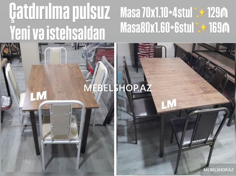 -Masa 2x1 +6 stul 599₼-