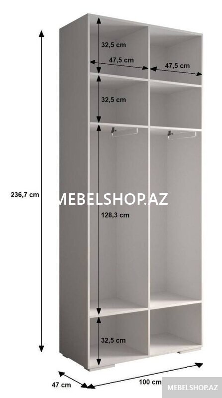 Dolab eni 150sm hümdürlük 244sm, dərinlik 50sm