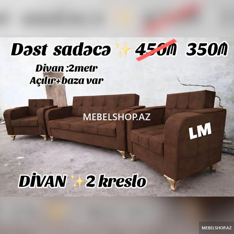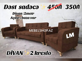Şirkət439 AznDivanlar Yeni ve Sifarisle 189 Azn Rəng seçimi var Açılan və Bazalı Keyfiyyətli Türkiyə Parçaları və 25"lik qupka sıxlığı Çatdırılma ödənişli