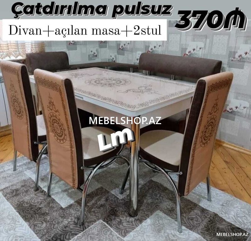 Şirkət Stol stul desti 110manatdan başlayır Stol stul desti anbardan satiş var Modellər coxdur Rəng secimi etmək OLAR. Ölcülərə görə qiymət dəyişir Keyfiyyətinə görə qiymət deyişir Malın tipi: Masalar və oturacaqlar Yeni?: