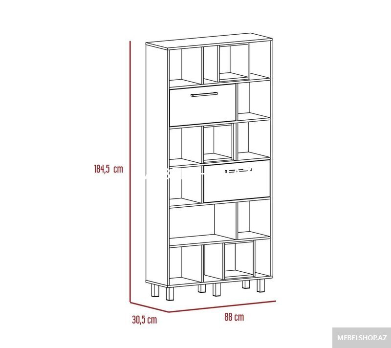 Hündürlüyü 184.5sm, eni 88sm, dərinliyi 31sm