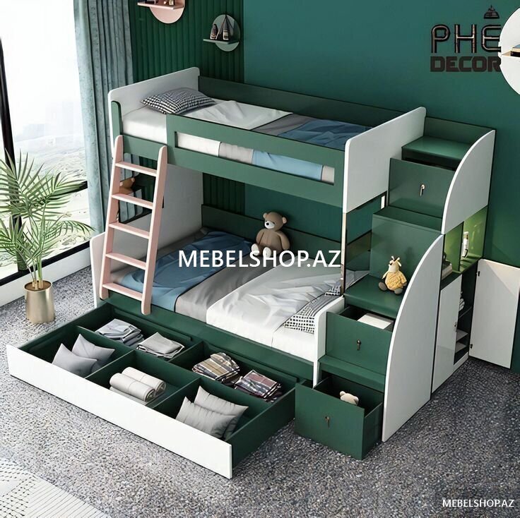 Minimalist və zövqlü dizaynı sayəsində həm uşaqlar, həm də gənclər üçün mükəmməl uyğunlaşır. Təhlükəsiz pilləkən və dayanıqlı karkas rahat və güvənli istifadə üçün nəzərdə tutulub.