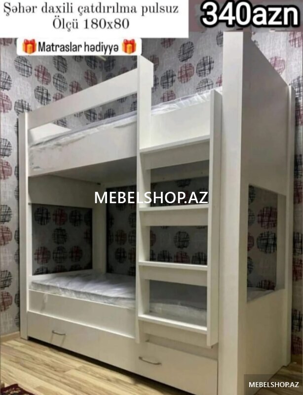 199 AznHər yataq 180 kiloqram yükə davamlıdır, və lazım olduqda ayrılıb tək tək qoyula bilir FABRİKDƏN BİR BAŞA SATIŞ Topdan və pərakəndə eyni qiymətə Mebel aldıqda uşağınızın gələcəyi üçün ekoloji təmiz olduğundan əmin