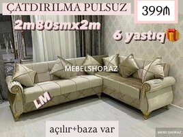 Şirkət139 AznKünc divanlar Yeni və sifarişlə Endirimdə 289 azn Ölçü: 2m40smx1m50sm Rəng seçimi sərbəst. Kitab kimi açılan və bazalı Çatdırılma ödənişli
