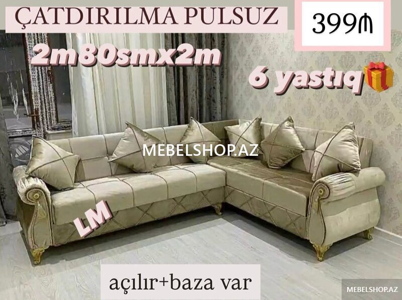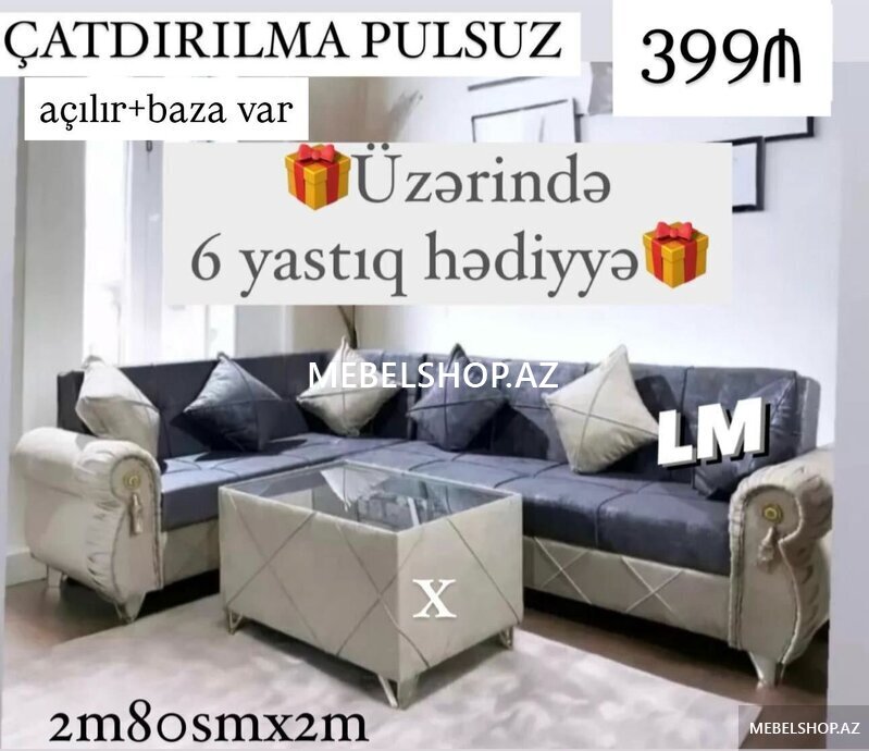 Şirkət420 AznKünc Divanlar ENDİRİM 319 azn Rəng seçimi var Ölçü 260x160 2Yastıq hədiyyə Açılan Bazalı Çatdırılma pulsuz