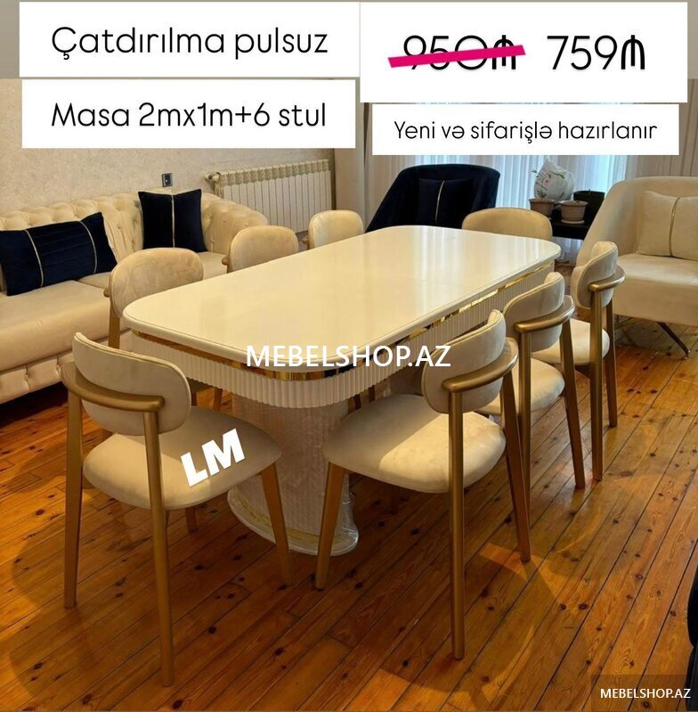 Qiymət : Masa 2x1 +6 stul 429₼