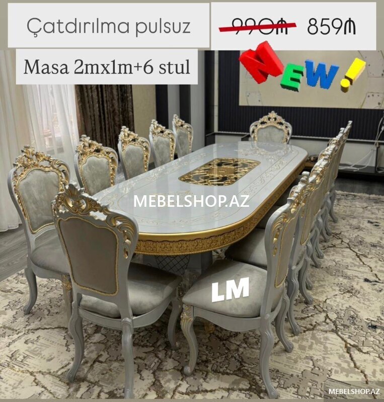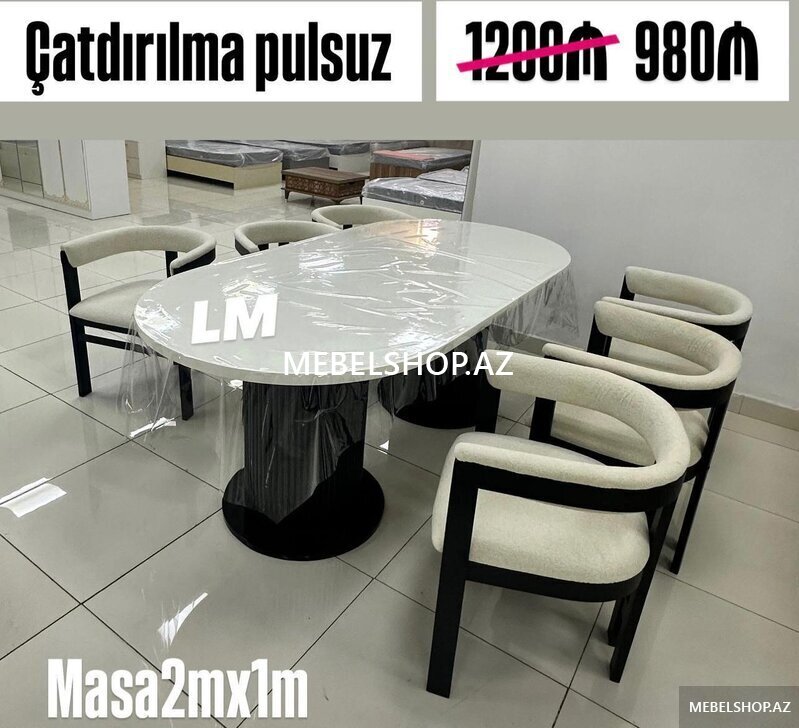 Qiymət : Masa 2x1 +6 stul 489₼