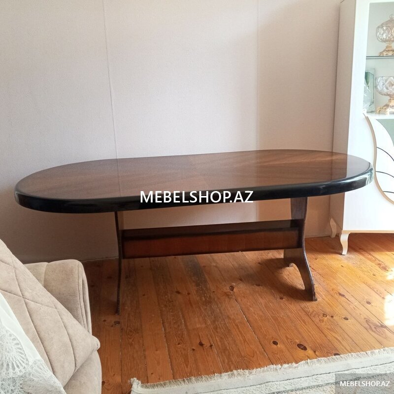 Oval formal masa – taxta üstlü (işlənmiş mebel- 2023-ci il)