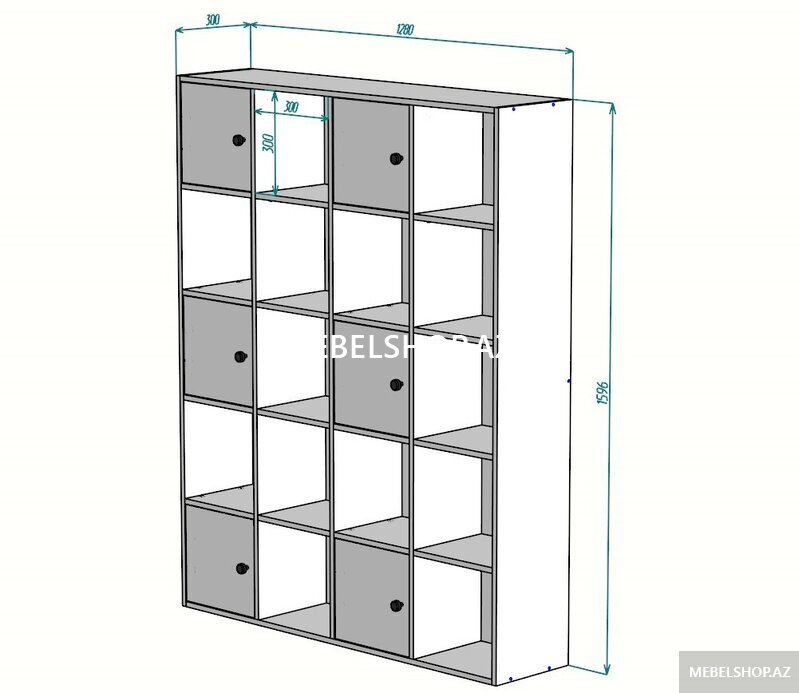 Ofis və ya ev üçün rəfli dolab. Sifarişlə Türkiyə və ya Rusiya istehsalı materialdan yığılır.