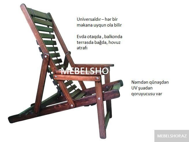 Evdə kreslo kimi, bağda balkonda açıq havada lejanka şezlonq kimi istifadə olunur.