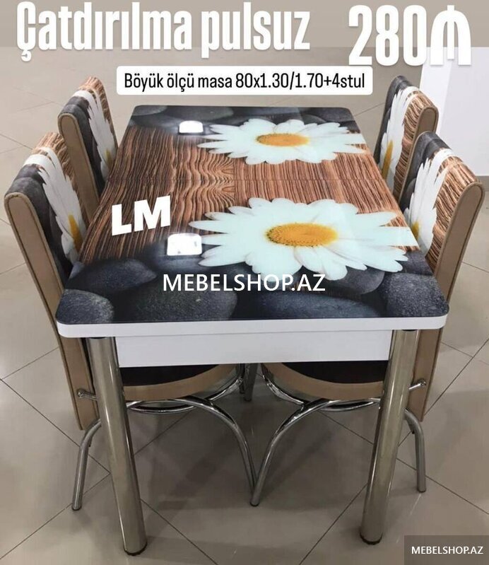 Qiymət : Masa 2x1 +6 stul 489₼