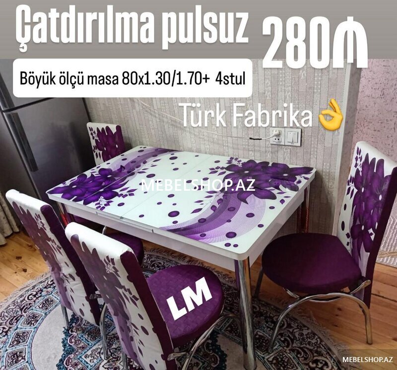 Masa bağlı: 90×1.70+6stul: 320₼