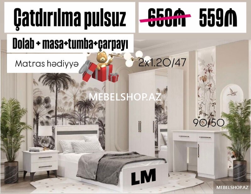 Şirkət219 Azn 1 Dolab + 2 çarpayı 530₼